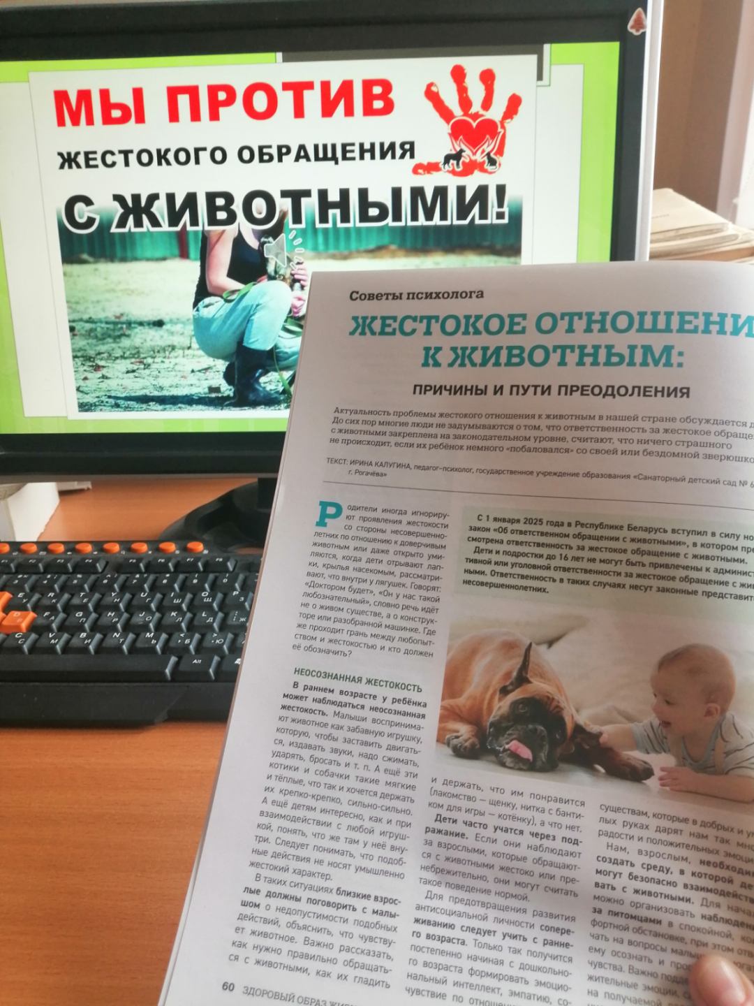 С целью духовно-нравственного воспитания, формирования ответственного отношения к окружающему миру 9 октября для учащихся прошел урок нравственности «Мы против жестокого обращения с животными!». Ребятам напомнили о заботе, любви и сострадании, бережном и гуманном отношении к домашним питомцам и другим представителям окружающего мира. Библиотекарь познакомила с основными положениями Закона Республики Беларусь «Об ответственном обращении с животными», вступившими в силу 1 января 2025 года, обратила внимание на административную и уголовную ответственность за жестокое обращение с животными.