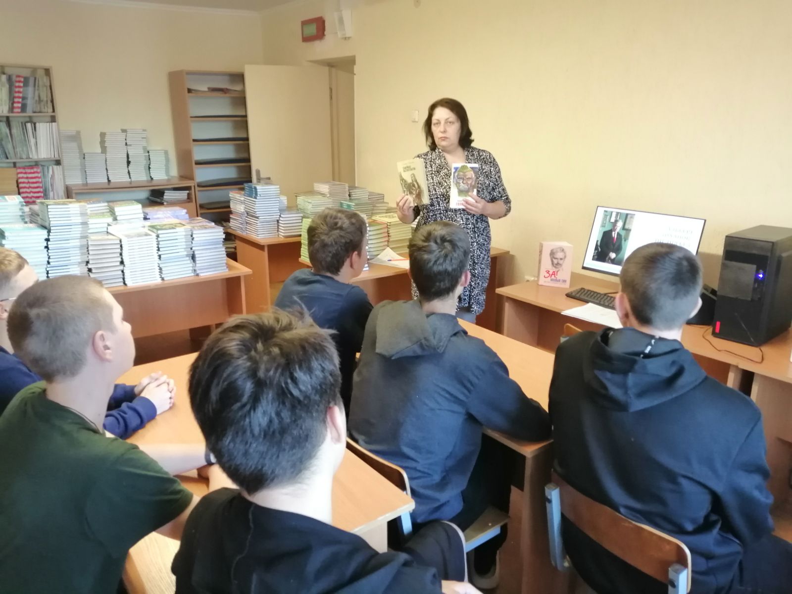 Посредством мультимедийной презентации библиотекарь познакомила ребят с интересными страницами жизни и творчества писателя, основной темой его произведений – становление характера подростка, формирование его мировоззрения, взаимоотношения с миром взрослых, которой Альберт Лиханов был верен на протяжении всей своей творческой жизни.
