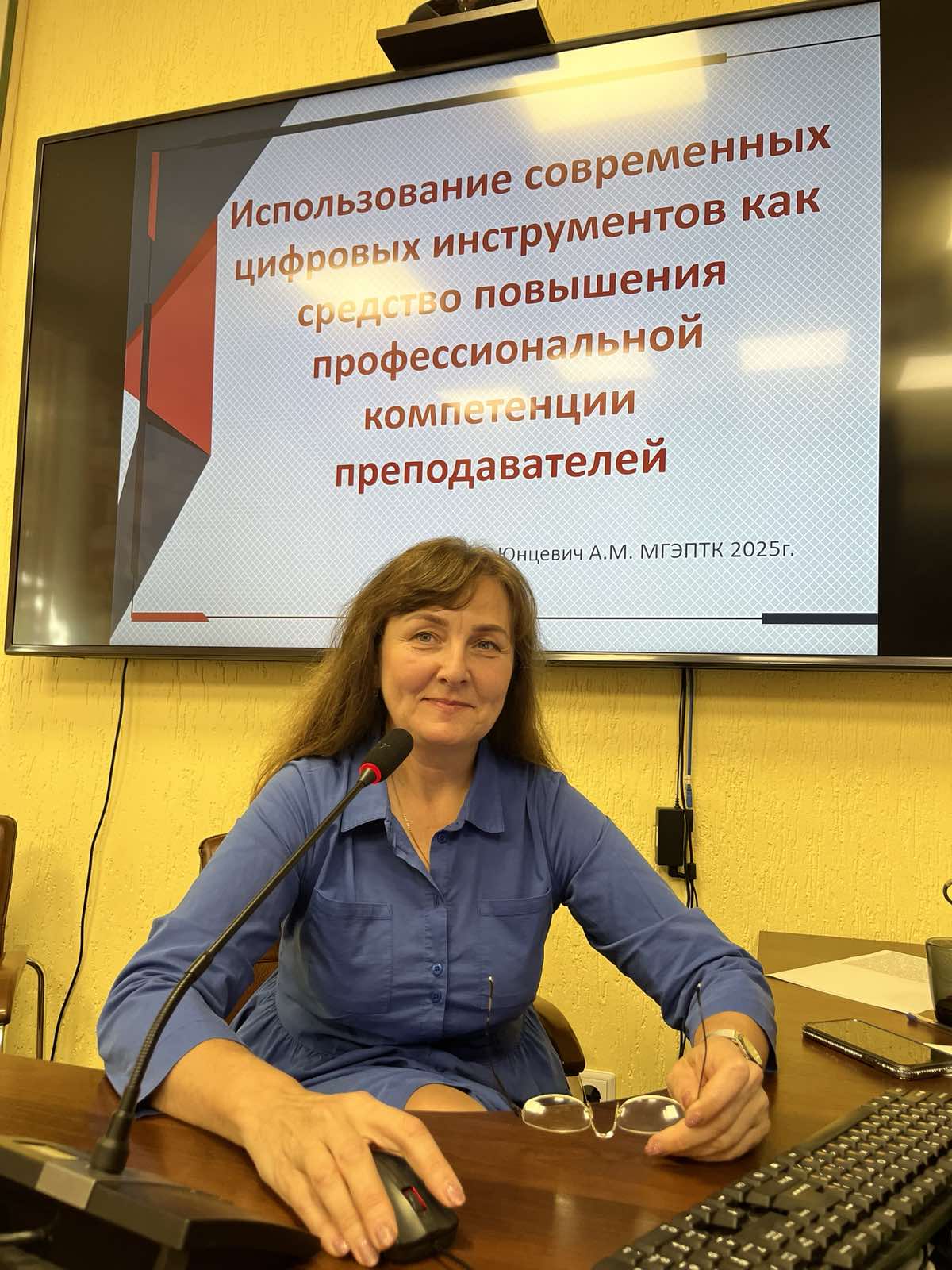 В рамках семинара Анжела Михайловна выступила с докладом на тему: «Использование современных цифровых инструментов как средства повышения профессиональной компетенции педагогов». В своем выступлении она поделилась с коллегами практическим опытом и эффективными цифровыми решениями, применяемыми в нашем учреждении образования.