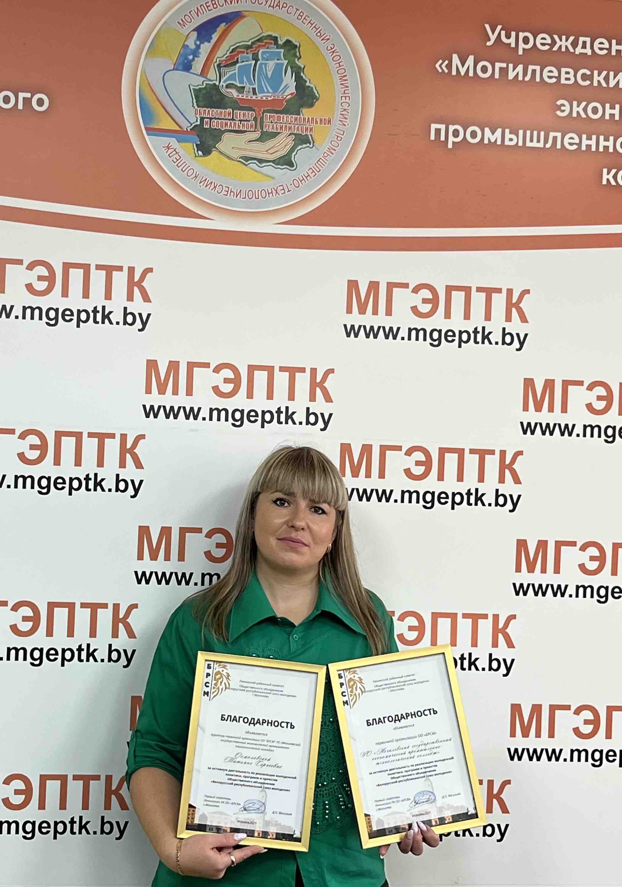 Первичная организация БРСМ МГЭПТК и ее куратор Татьяна Сергеевна Осмоловская были отмечены благодарностями Ленинского районного комитета ОО «БРСМ» г. Могилева.
