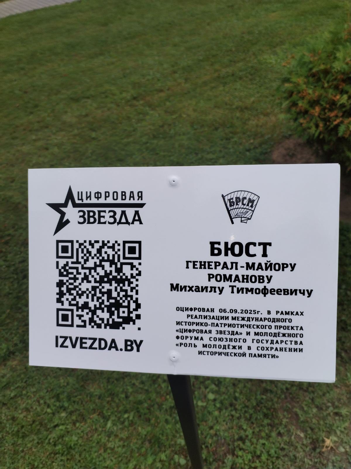 Центральным элементом программы стала церемония возложения цветов к Бюсту генерал-майора Романова Михаила Тимофеевича и торжественное открытие таблички с QR-кодом. Теперь каждый желающий, наведя камеру телефона, сможет моментально перейти на цифровую страницу героя и узнать его историю.