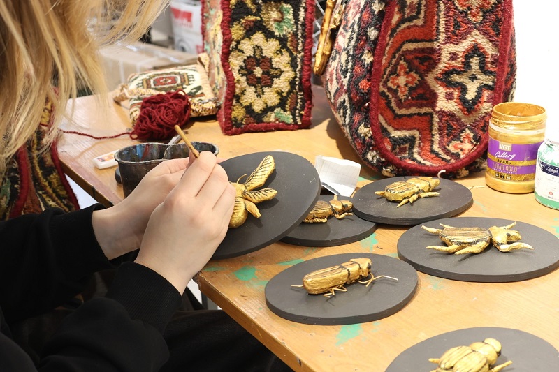 По словам собеседницы, студенты сами выбирали, что делать: ваять, рисовать, шить или что-то другое… Однако многие экспонаты так или иначе посвящены нынешнему Году женщины. Что особенно радует, в «Студии дизайна» готовили работы к смотру учащиеся разных курсов.