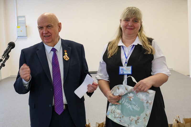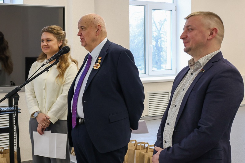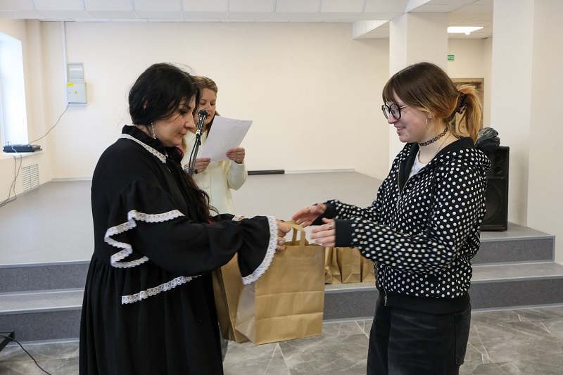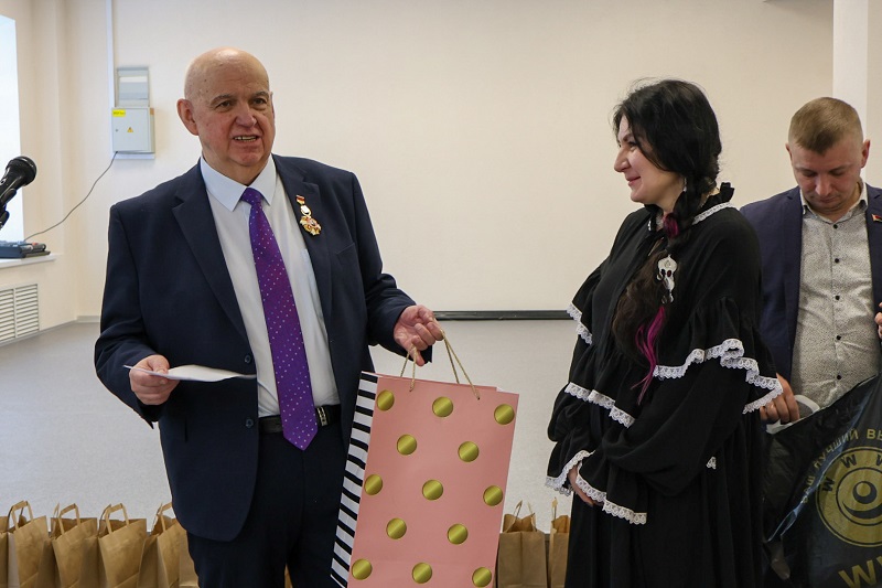 По доброй традиции ребят поздравили и вручили памятные подарки директор учебного заведения Олег Баханович и председатель профсоюзной организации учащихся Юлия Бородько. В церемонии также участвовала преподаватель, руководитель «Студии дизайна» Данута Чех-Астрашевская, чьи дети завоевывают наибольшее количество наград на творческих конкурсах различного уровня, а также другие сотрудники МГЭПТК.