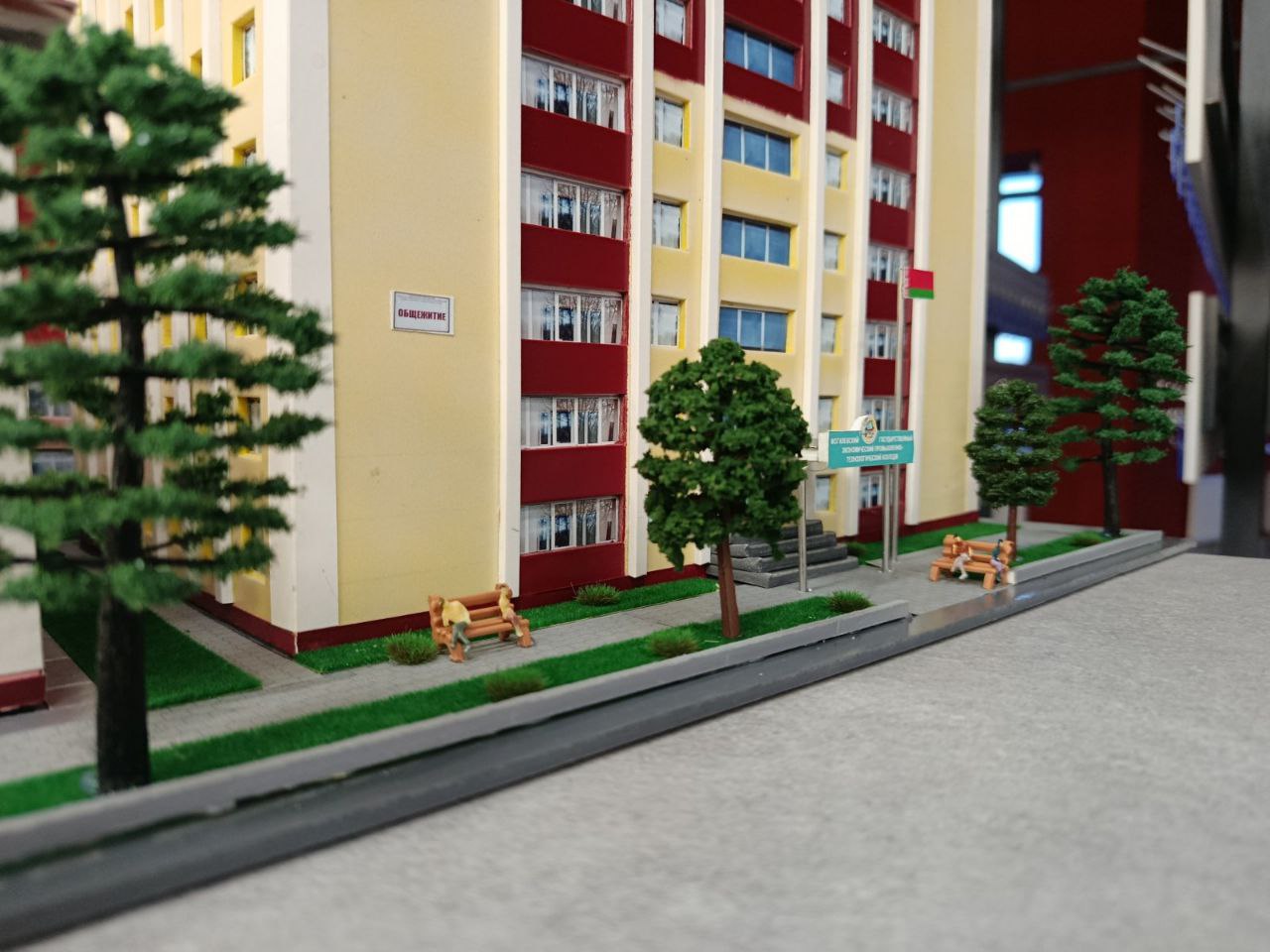 В миниатюре воссозданы главный корпус колледжа и общежитие. Автор диорамы – заместитель директора по воспитательной работе Александр Матолин.