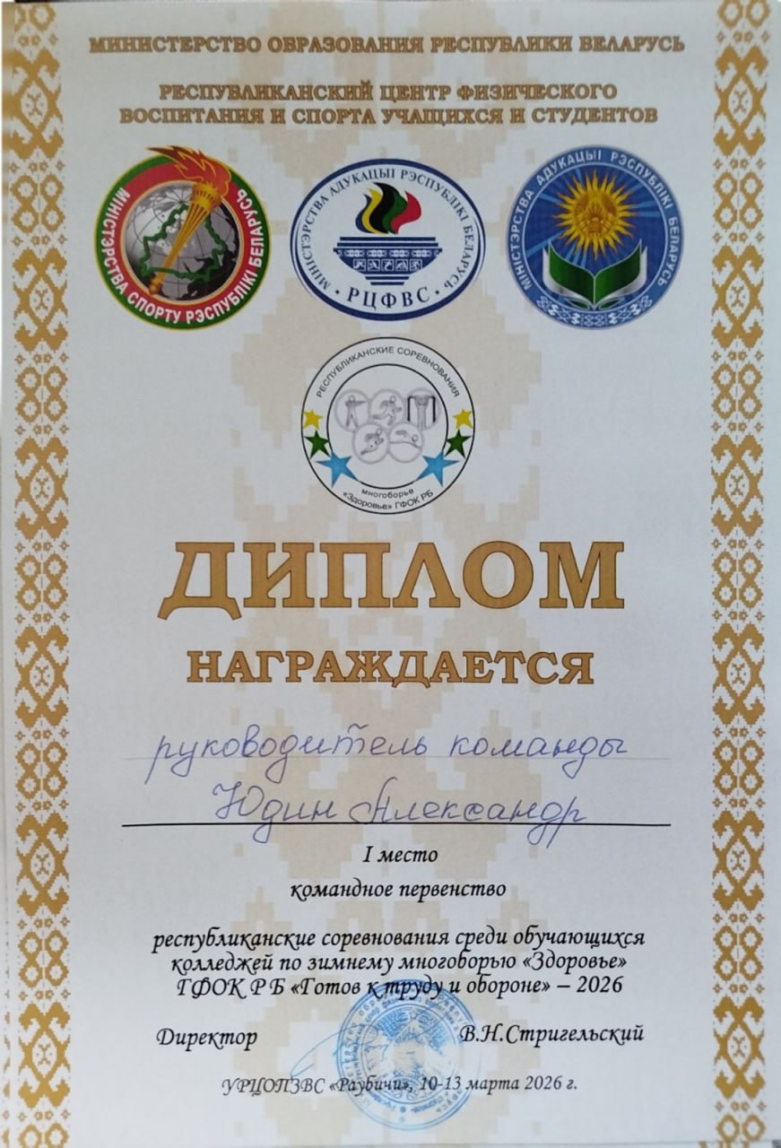 Наши студенты в составе сборной команды Могилевской области заняли 1-е общекомандное место на республиканских соревнованиях среди обучающихся колледжей по зимнему многоборью «Здоровье».