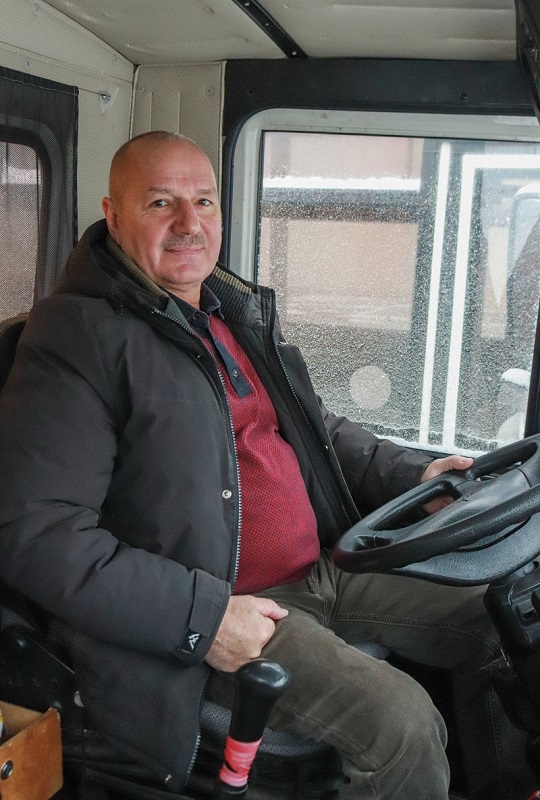Геннадий Куропатенко за рулём учебного МАЗа