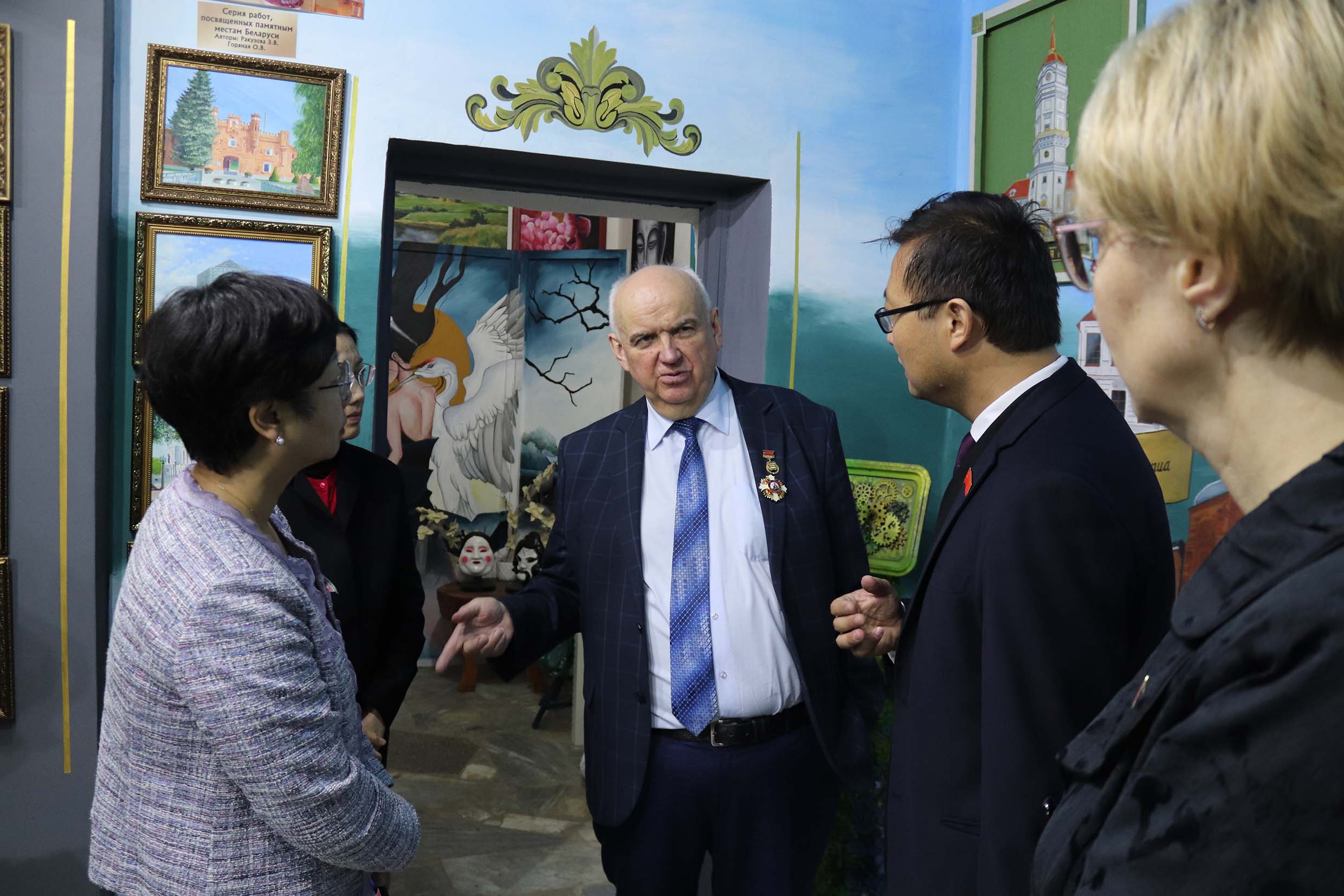 Олег Баханович проводит экскурсию для китайской делегации по музейному комплексу, 2020-е гг.