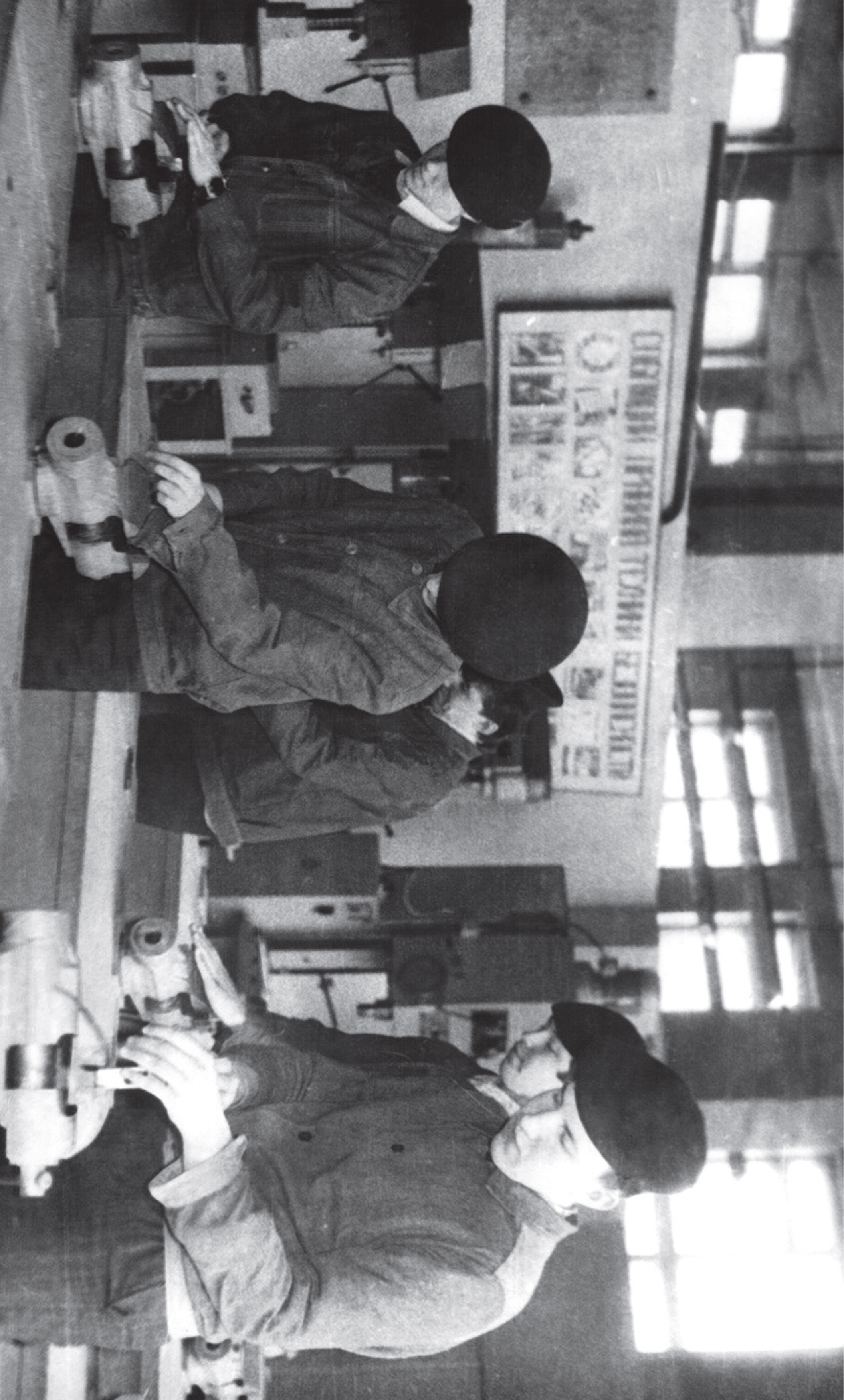 Урок производственного обучения в слесарной мастерской №1 ПТУ №70 химиков, 1980-е гг.